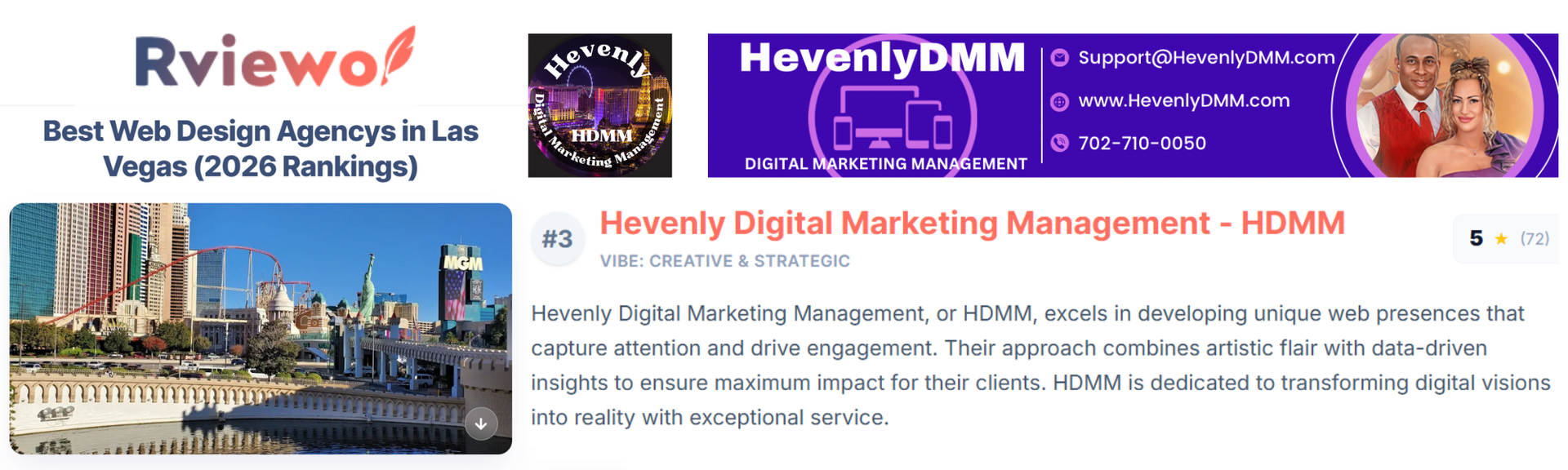 United States, 2nd Dec 2024 - Based in Las Vegas, Nevada, HevenlyDMM is a full-service digital marketing agency offering tailored solutions designed to align with the unique objectives of each client. The company specializes in SEO management, custom website development, personalized logos, professional graphic designs, Google Business Profile (GBP/GMB) optimization, Google Ads management, and comprehensive social media account management.
